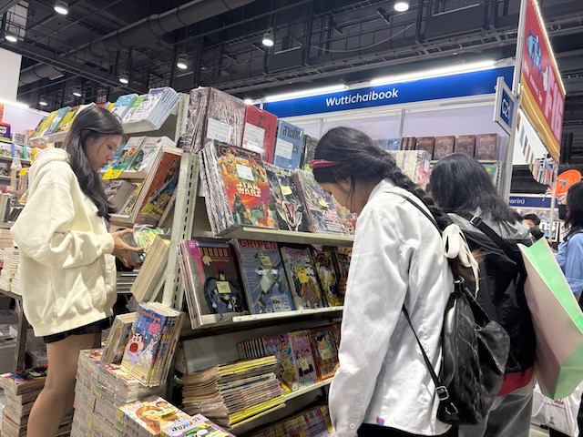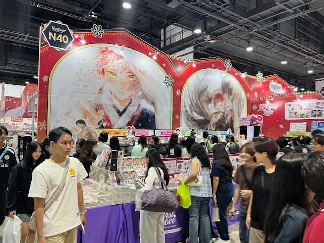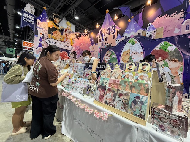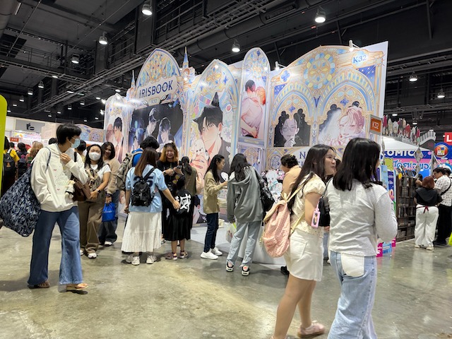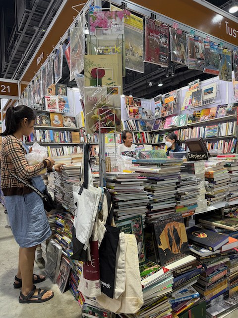 曼谷書展繽紛多樣。有很多年輕人、潮感、BL+GL的展位,也有讓人想起1960、70年的展位。請看照片。