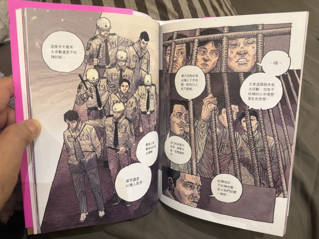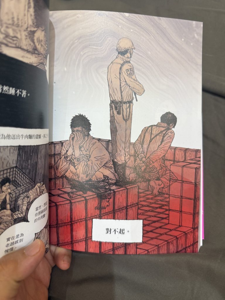 〈牛肉麵〉那一篇裡監獄裡的蹲廁,讓沒進去過的人也能感受那氣氛,聞到那氣味。我看幾個憲兵押人的那個畫面,當年國民黨強權時代的肅殺感受,也真是躍然紙上。