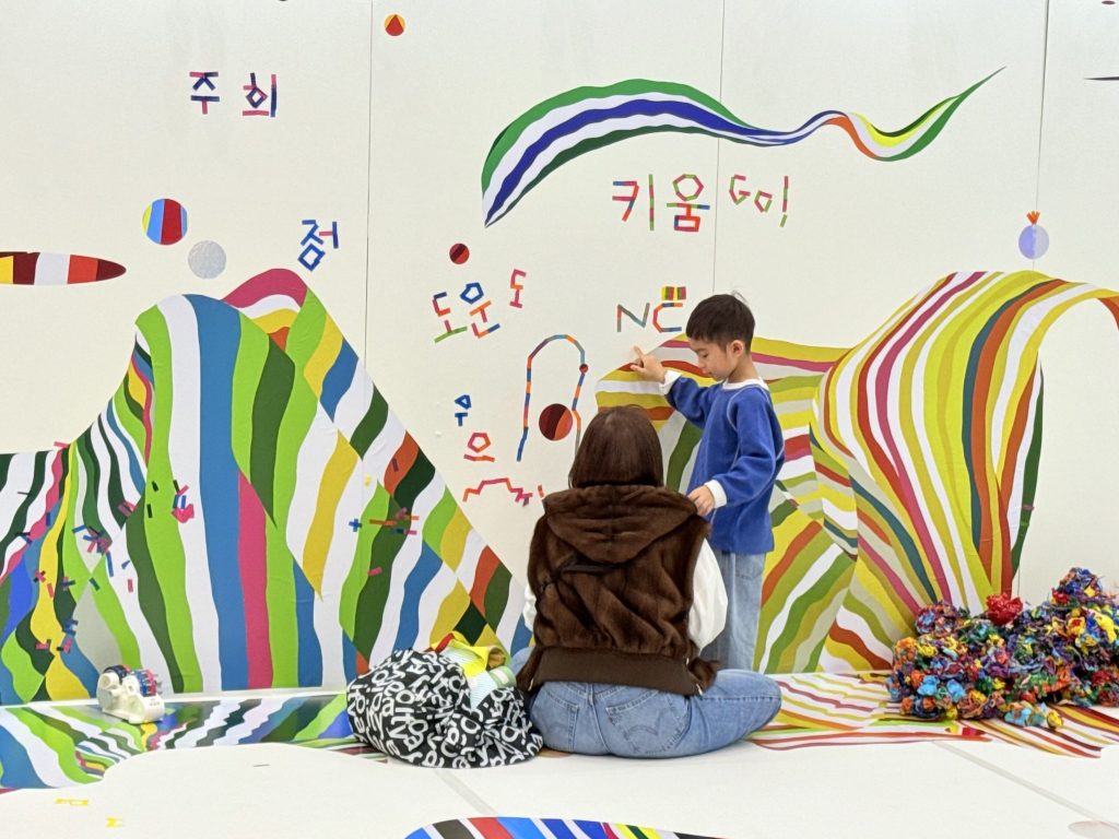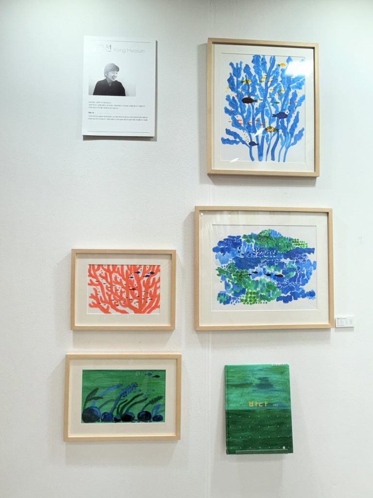今天來到另一個海洋主題的畫展時,大家要題字紀念。輪到我,就用韓文寫了: